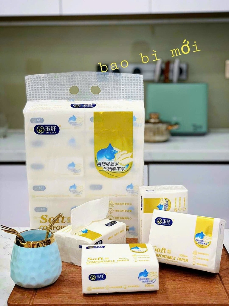 Giấy ăn cao cấp SOFT YUXIAN 4 lớp - COMBO 2 TÚI (300 tờ/gói - túi 12 gói)