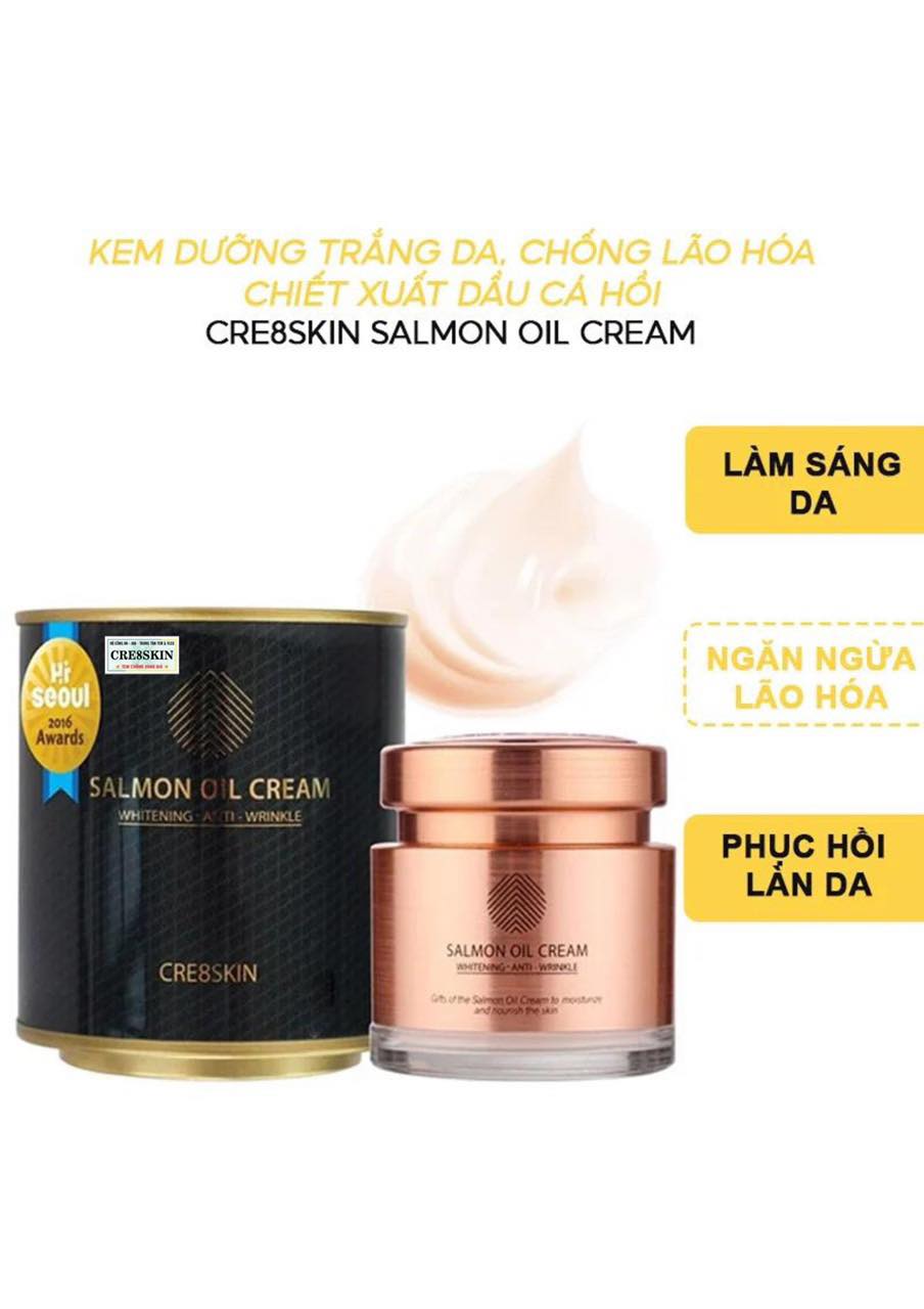 💥 Salmon Oil Cream 50gr: Chiết xuất từ cá hồi và các thành phần tự nhiên kết hợp, Salmon Oil Cream giúp làn da sần sùi, thô ráp, nhiều mụn ẩn trở nên trẻ trung, mịn màng, trắng trẻo.