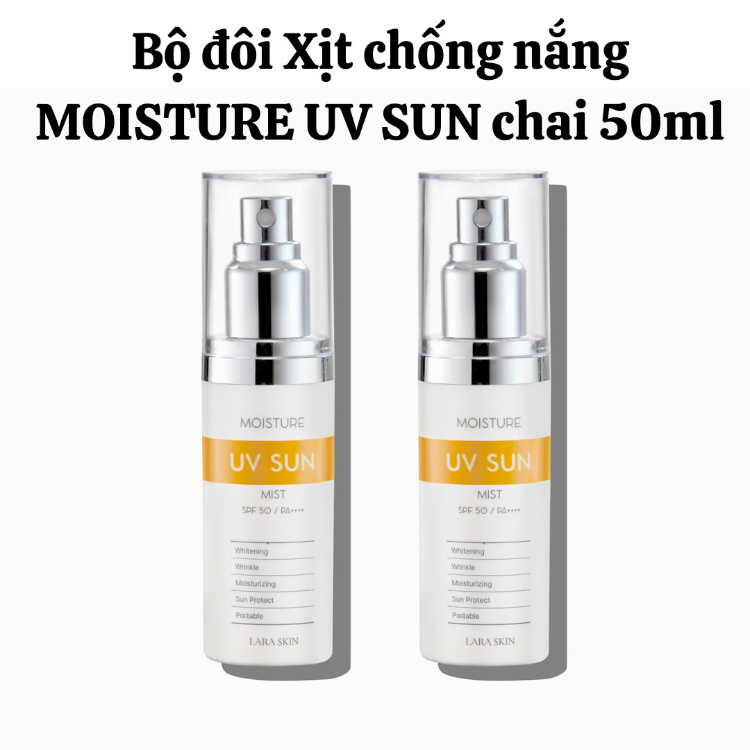 Xịt chống nắng UV SUN với chỉ số chống nắng SPF50+ PA++++ luôn bảo vệ da khỏi những ảnh hưởng tiêu cực từ tia UV và môi trường bên ngoài. Đặc biệt giữ lớp trang điểm bền màu, hỗ trợ kiềm dầu giúp da luôn tươi tắn, mịn màng cả ngày dài.